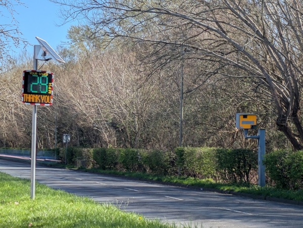Movable speed indicators have been in Abingdon for nearly two years, but this is the first time I’ve seen one working so close to a long-standing speed camera. This is on Audlett Drive in Abingdon, where the limit has recently changed from 40 mph to 30 mph.