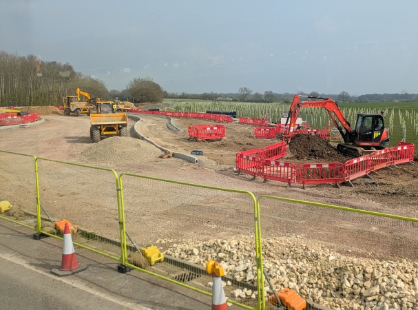 Meanwhile, extensive earthworks are underway for the new southbound slip roads onto the A34. This view is from the bridge over the A34. One of the contractors said a drone had been flying to record progress.