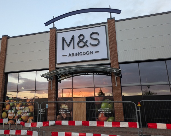 Signs have started to go up for the new Marks & Spencer Food Store at Fairacres Retail Park in Abingdon, marking another visible step towards its opening.