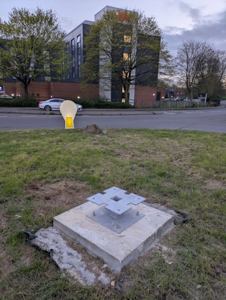 A plinth has recently appeared on the Marcham Road roundabout. A new statue is expected to be put up soon on this plinth to replace the monk removed last year. That one had been carved from a single tree trunk but had rotted from within. It has since become a bug hotel in Boxhill Wood. The new one has also been carved from a single tree trunk.