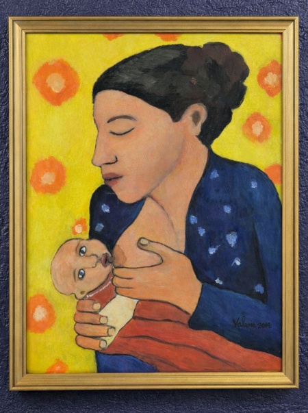 The painting currently on display in the library shows a woman breastfeeding, with echoes of the work of Paul Gauguin