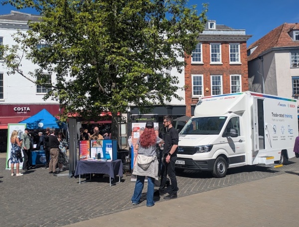 Abingdon’s Market Place hosted the Go Electric Oxfordshire event yesterday, the first in a county-wide series aimed at helping people explore the shift to electric travel.