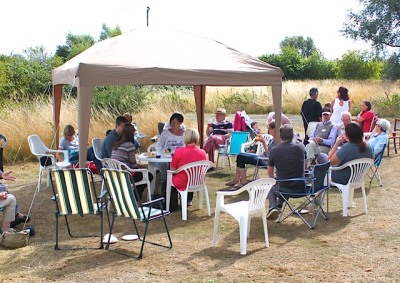 The West End Allotment Association – the site’s just the other side of the A34 – held its second summer barbecue on 7th September. On a bright and breezy afternoon over 40 members, relatives and friends enjoyed delicious food, local beer and soft drinks, and the chance to meet & chat to other allotment-holders.