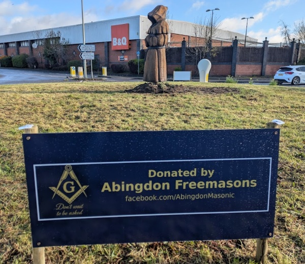 It has been arranged by the Abingdon Freemasons, who really do have ties with the original monk, although not the hoax ones put on this blog on April 1st. It was put up jointly by St Swithun’s Lodge, Abbey Lodge and St Swithun’s Chapter. The previous monk also had a Masonic connection as the original monk was sponsored by the Abbey Press which was run by one of their members.