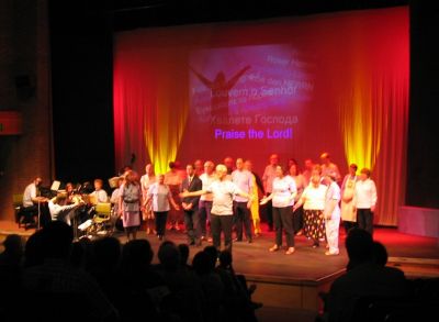 Here are visitors from some of the twin towns, gathering for the start of a conducted tour around the Abbey, and down to St Helens Church.