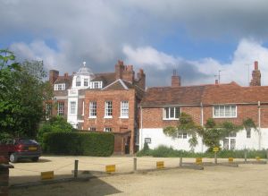This mum is taking her three children, complete with flags, into Abingdon, on this sunny morning.